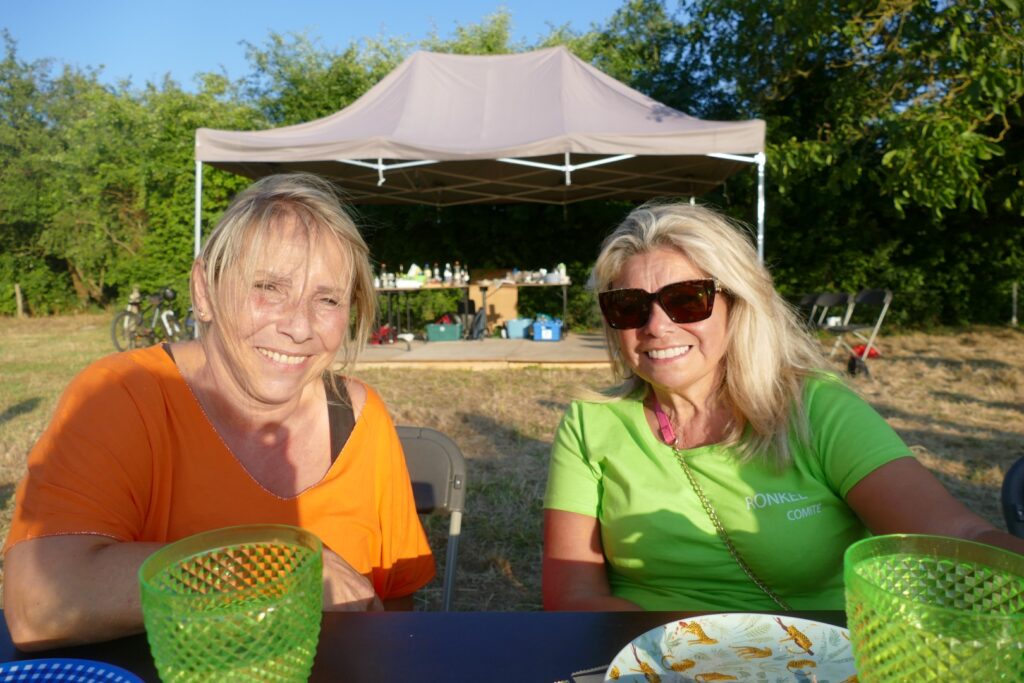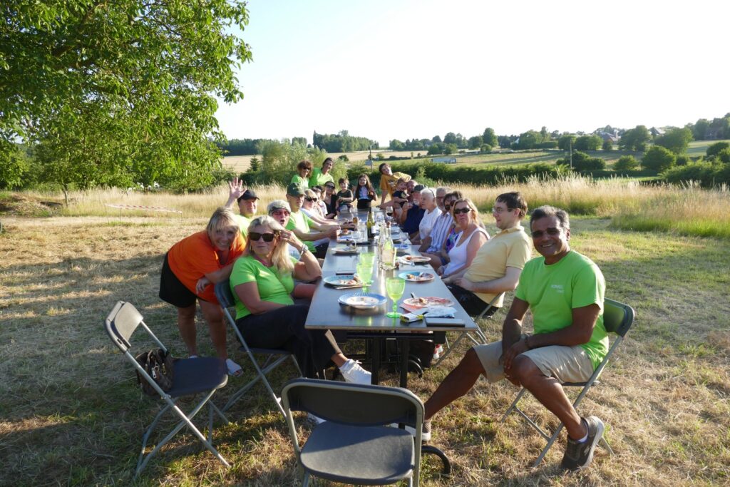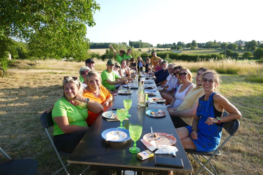 Sinds 2010 komen we elk jaar aan het begin van de zomervakantie samen rond een gezellige maaltijd: ieder brengt zijn specialiteit mee en we delen een feestelijk moment. Afhankelijk van het weer gebruiken we het erf om ons te beschermen tegen de regen of onder de walnotenboom om ons te beschermen tegen de zon. In ieder geval, de goede sfeer is er.